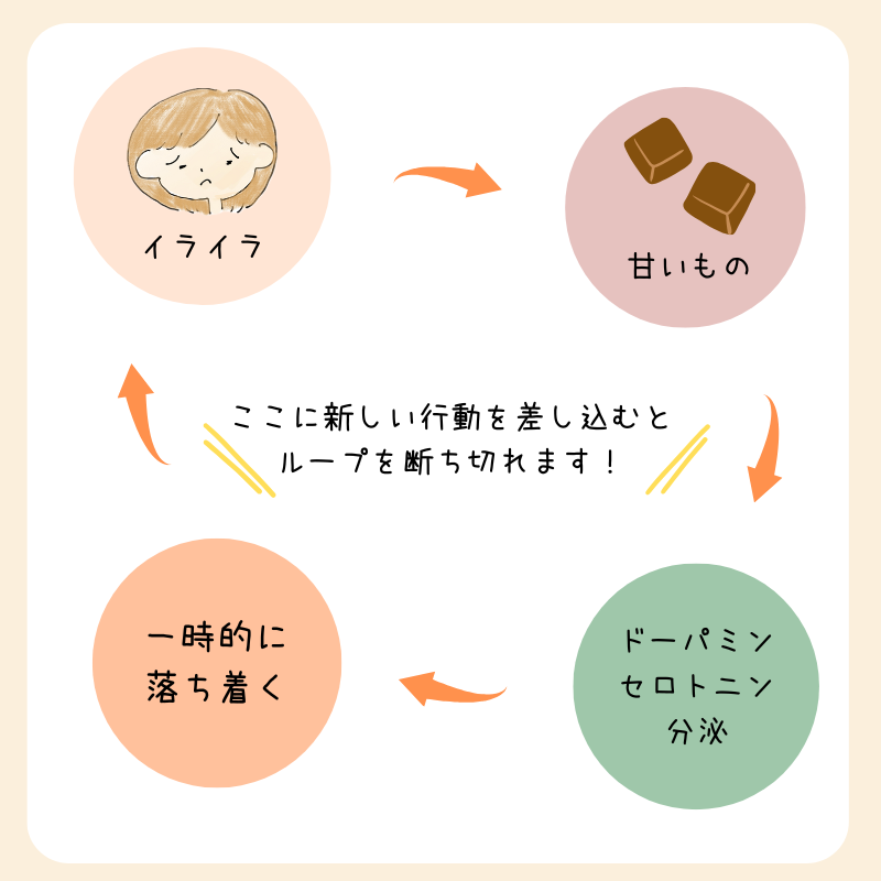 甘いものを口にすることで一瞬でも気をそらせる感覚が、クセになることもあります。