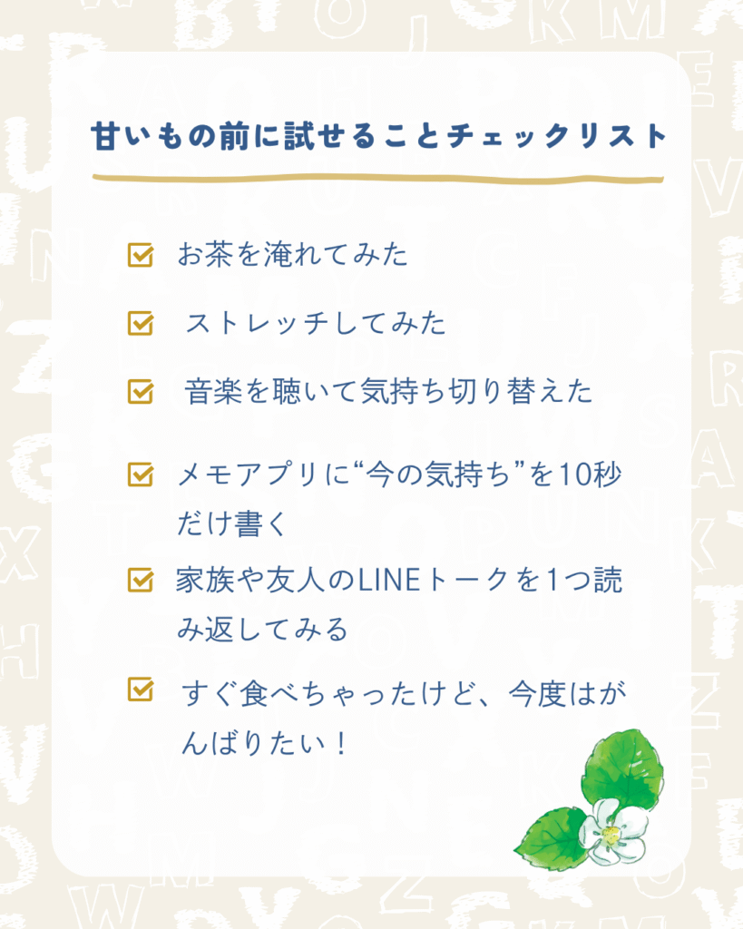 そんなやさしい向き合い方で、「甘いもの欲に負けないわたし」になっていきましょう🌿