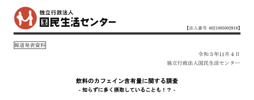 国民生活センターの調査によると、市販の飲料でカフェイン含有量の表示があるものはごく一部です。