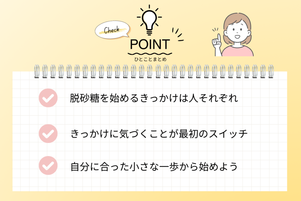 \脱砂糖のきっかけを知ることで、最初の一歩を踏み出しやすくなります/