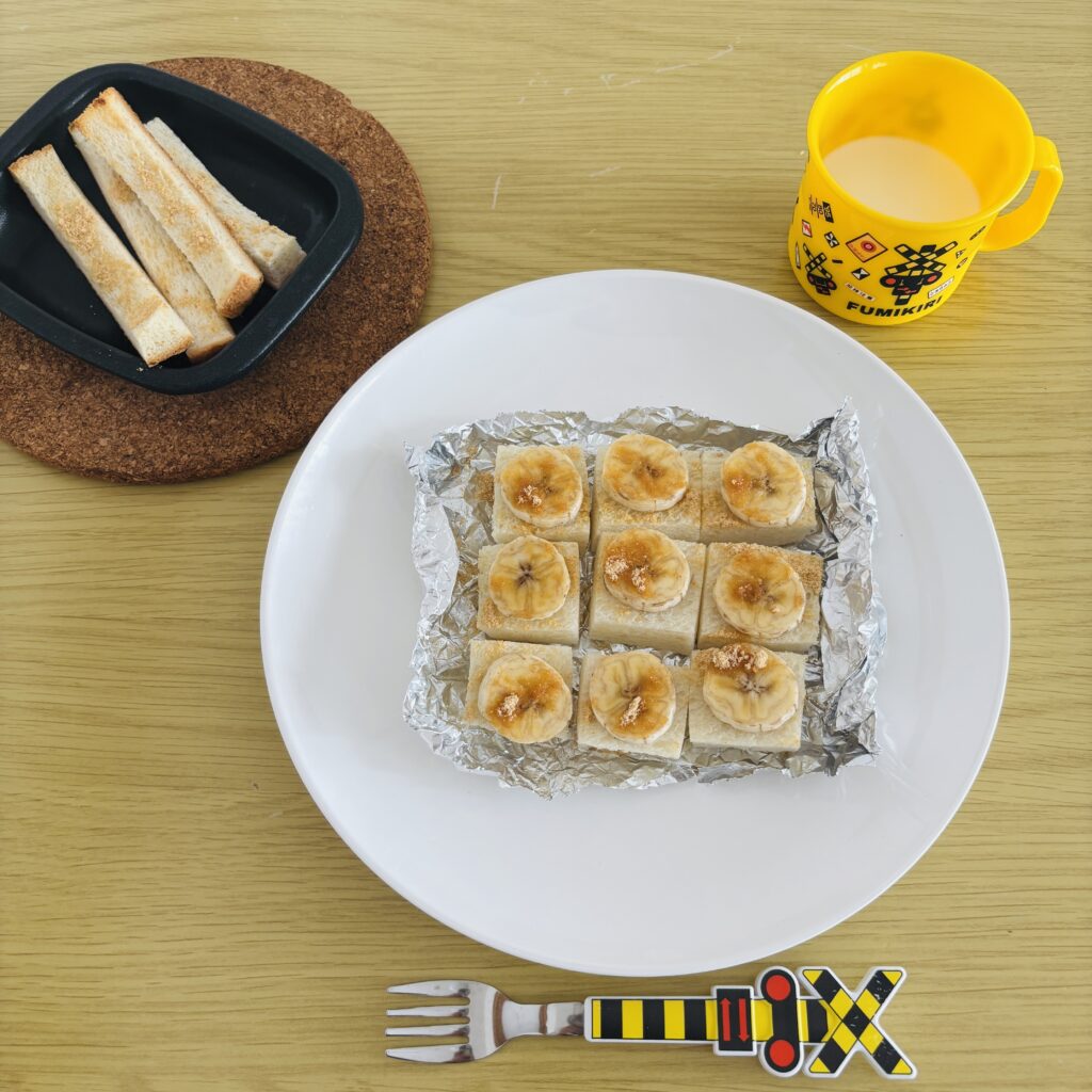 バナナの甘さと合わさって、やさしい味わいの“おやつトースト”に。